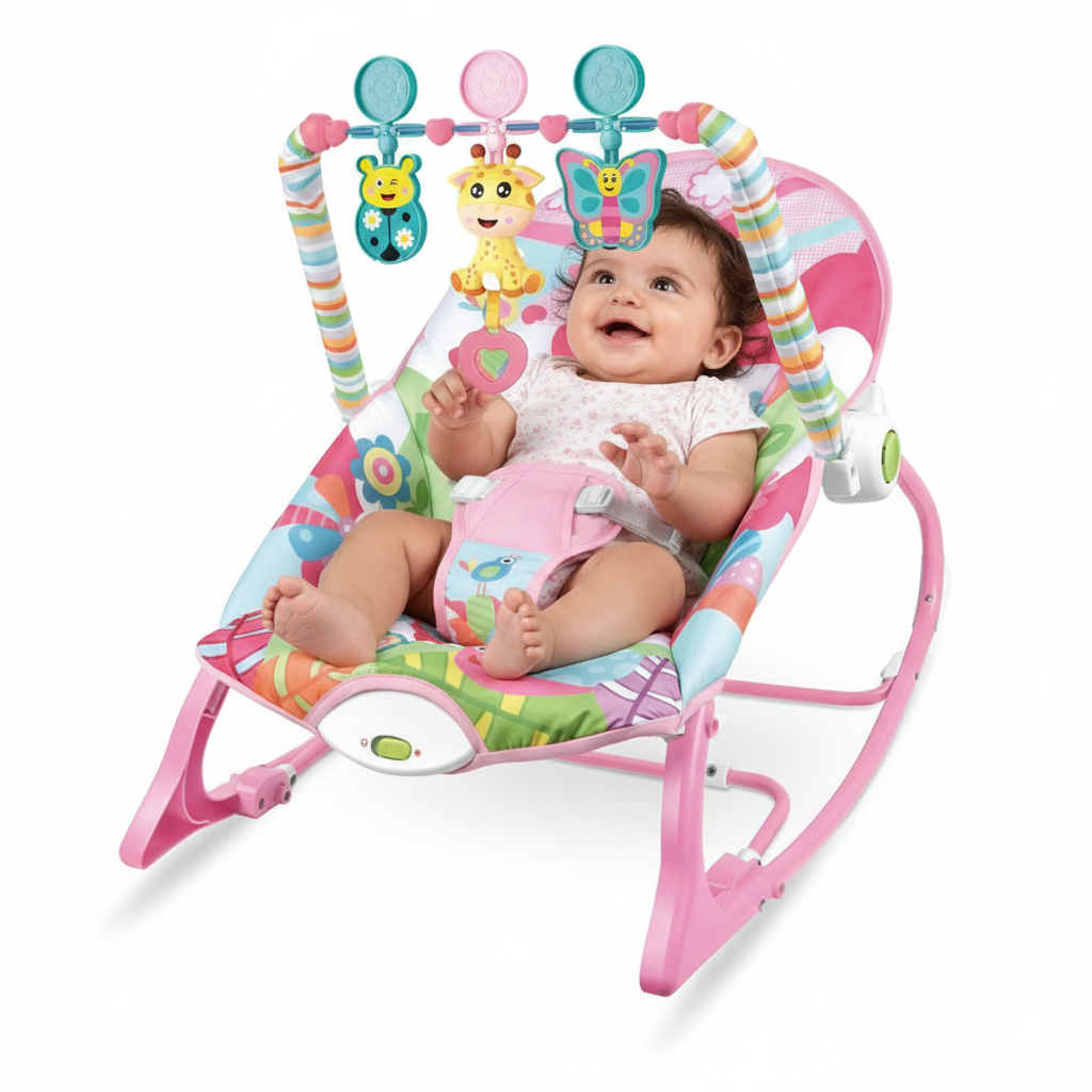 Comienza como una silla o mecedora para el bebé, con un armazón de bajo perfil ideal para recién nacidos. A medida que tu pequeño crece, puedes convertirla fácilmente en un asiento con barra de juguetes removible. Cuando ya no es tan pequeño, se transforma en una mecedora para niños de hasta 18 kg (40 lb).
